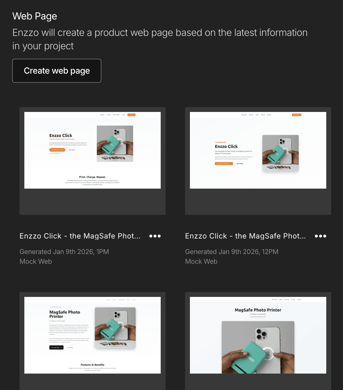 Create product websites to share your idea internally or with customers to get signal, react, validate, and move forward.