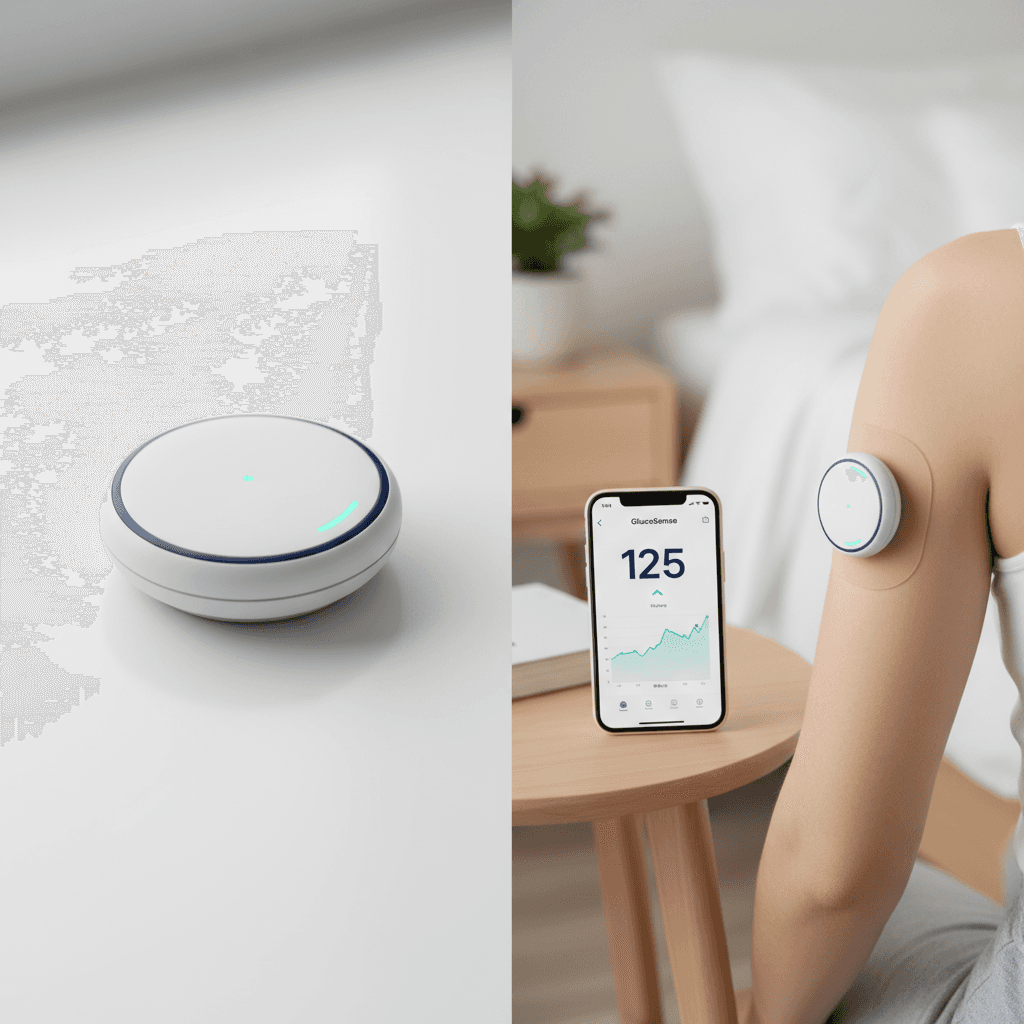 A wearable continuous glucose monitor that tracks blood sugar levels in real time for clinical and at-home use.