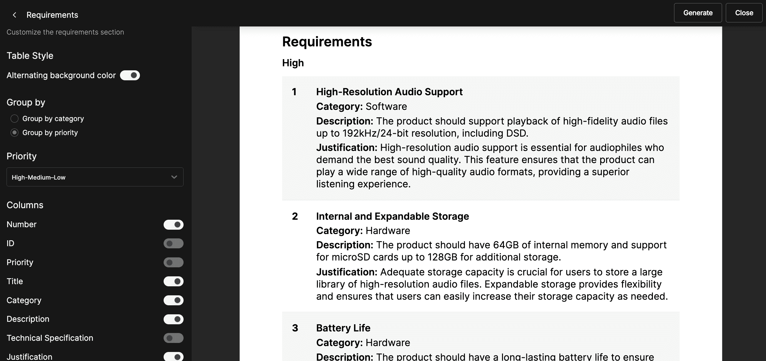 Enzzo jumpstarts your product by generating initial categories and requirements—invite your team to refine them to perfection.