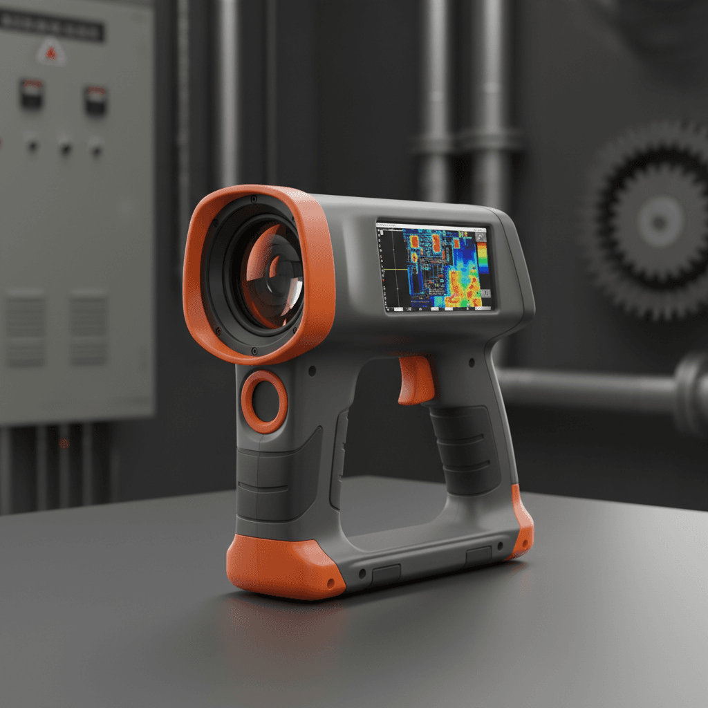 A ruggedized thermal imaging camera that detects heat signatures and electrical faults in industrial environments.